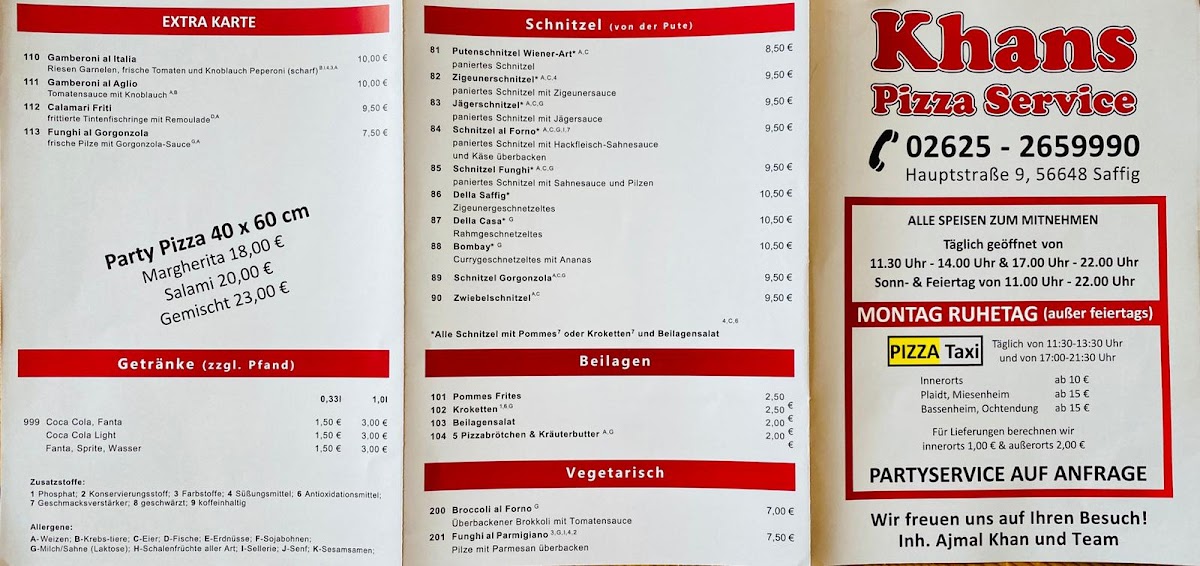 Khans Pizza Service Menu